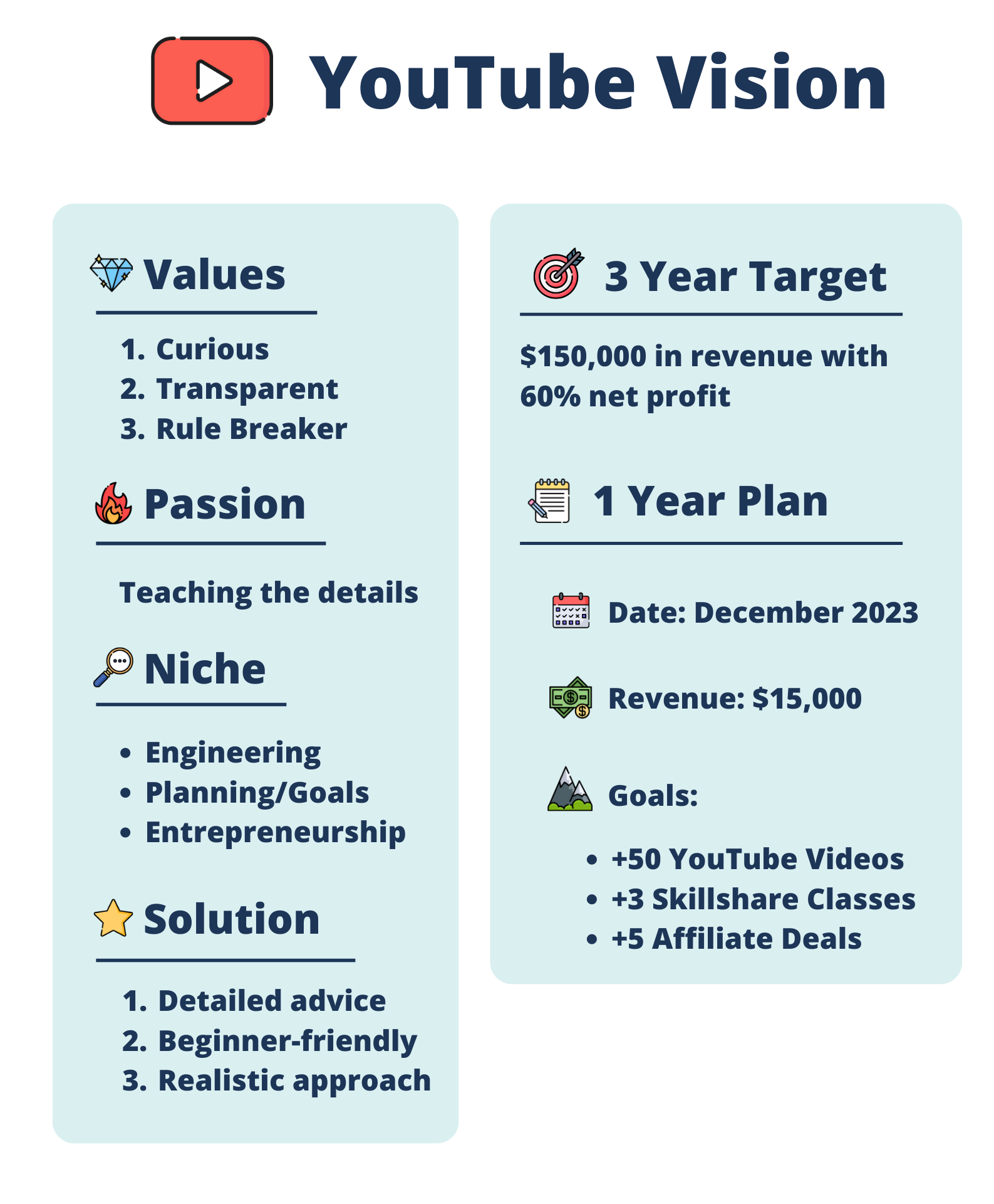 The vision template came from π Traction. I made this before starting the Creatorpreneur class.