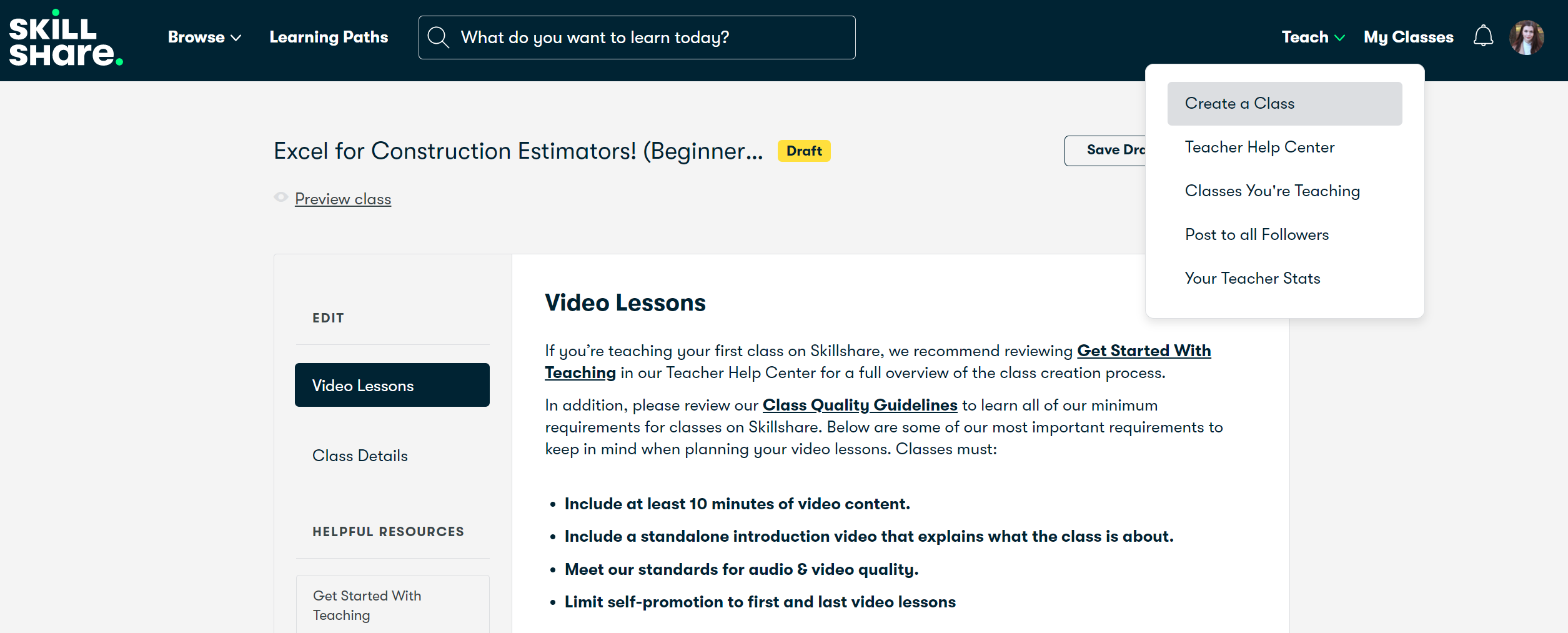 In order to post a class on Skillshare you have to follow these guidelines: