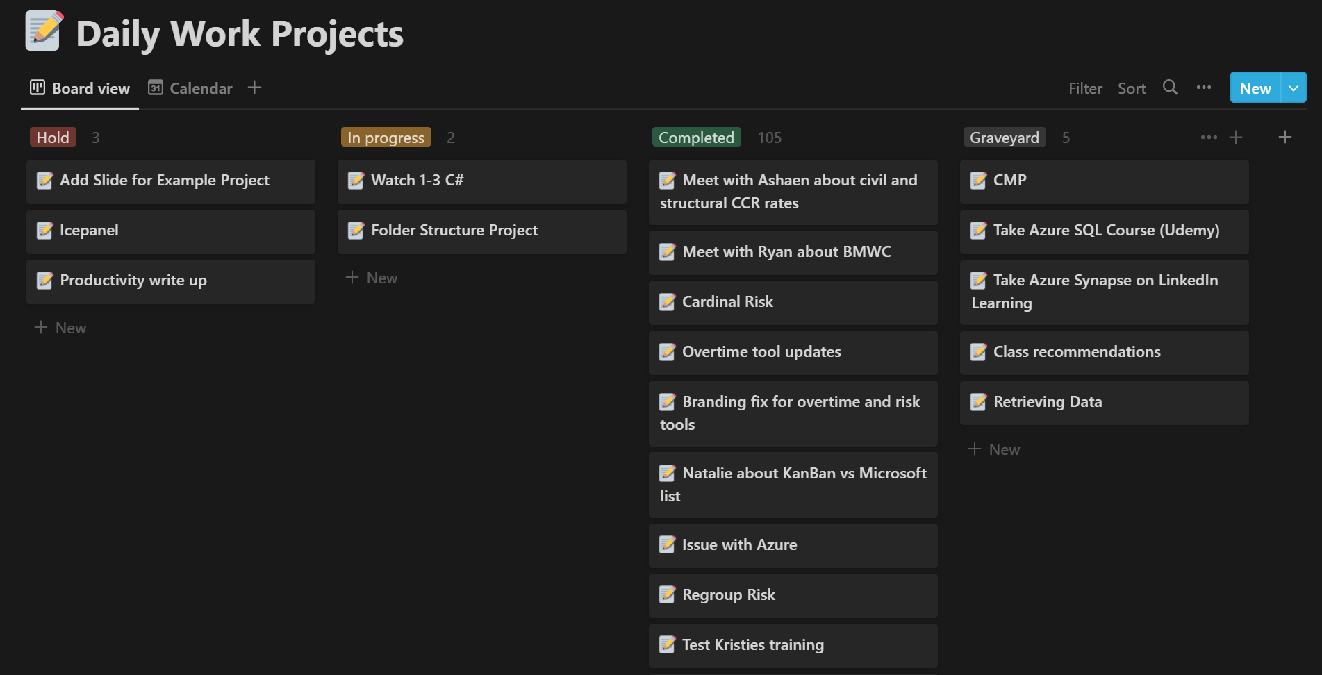 I track my day-to-day tasks in a note-taking app called Notion. I like using Notion because I love KanBan boards. Now, this is technically in a Project folder if we are still following the PARA system.